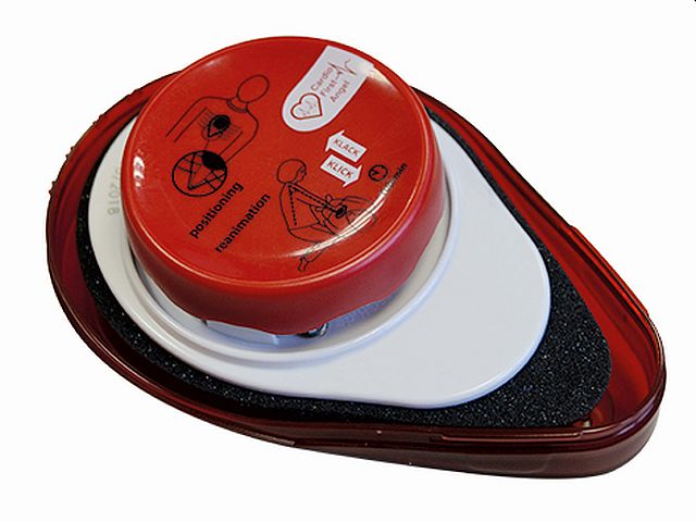 Mechanische und akustische Reanimationshilfe zur Unterstützung der Herzdruckmassage bei der Laienreanimation.