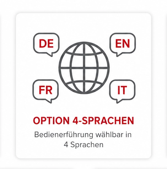 - Vier vorinstallierte Sprachen wählbar (optional)